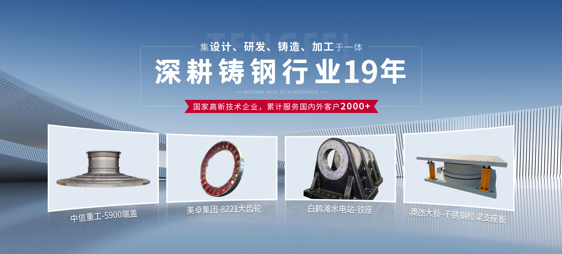 騰飛鑄鋼成立于2006年,位于全國鑄造基地河南省新鄉市,擁有員工300余人,是一家從事150噸以下碳鋼、低合金鋼、不銹鋼鑄鋼件研發、制造、服務為一體的國家高新技術企業。  公司通過了ISO9001國際質量管理體系認證,擁有2項發明專 利,2項河南省科技成果、25項實用新型技術,通過了“環??冃гu級B級企業”驗收,先后榮獲“河南省鑄造行業綠色發展企業”、 “河南省科技型中小企業”、“河南省專精特新中小企業”等榮譽稱號。  公司擁有2臺25噸電爐,4臺大型天燃氣熱處理爐、10米回旋自動拋丸機一臺, φ8m數控立車、φ10m數控滾齒機等各類高精裝備100余臺套,年產能3萬余噸,能為客戶提供從產品設計、木模加工、大型鑄造、大型加工一站式服務,產品廣泛應用于建材、冶金、鍛壓、冶金、水工、路橋、化工等多個重型行業?! ¢L期服務于中信重工、中船重工、美卓、上海中交、萊歇、寶武、濟南重工等全球知名企業,在行業內擁有較高的市場知名度和美譽度。